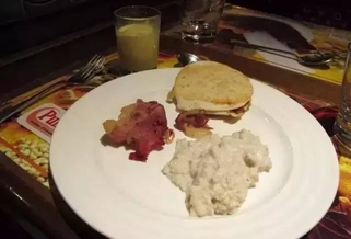 面饼蘸酱,或者面饼夹着菜糊糊蘸酱,或者面饼夹着肉和米蘸酱……