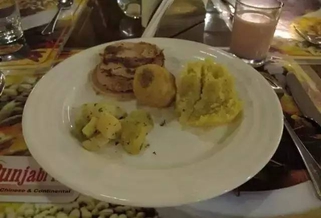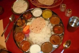 ▲最传统的印度饮食叫Thali,就是一个大铁盘子上面盛放了米饭,馕饼,酸奶,香料还有各种糊糊。