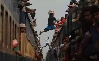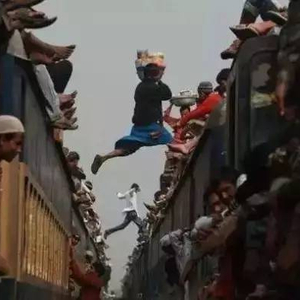 ▲印度的铁轨,一种神奇的腐朽,枕木都烂了。火车开动时,很多人也是把身子探在外面。
