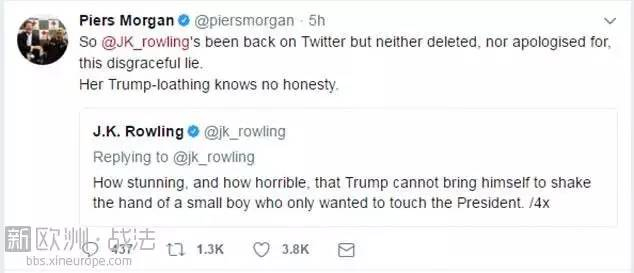 主持人Piers Morgan首先站了出来,发文指责罗琳出言不逊