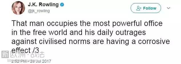 J.K罗琳连发推特怒怼川普,但是这次冤枉啊!