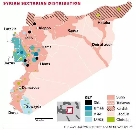 阿萨德政权及其盟友在过去几年中,成功地减少了逊尼派在大城市的存在,而基督徒、阿拉维派(伊斯兰教什叶派的支派,该教派是阿萨德的支持者)则不断增多。这些地区主要包括大马士革和沿岸城市,叙利亚大部分的贸易在这里进行。
