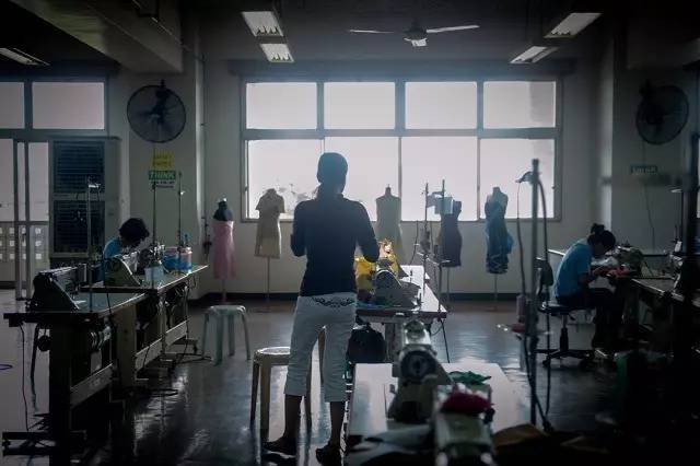 ▲ 受训人员在制衣工作坊中缝制衣服。摄: Dondi Tawatao