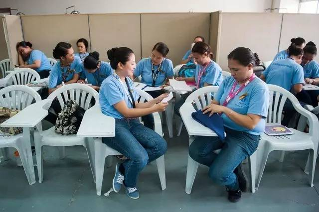 面试一旦成功,意味着菲劳拿到“有条件录取”,随后便是一系列繁忙的“新生培训”。不论国家和行业,所有菲劳都需参与“行前座谈会”(PDOS)——了解办理手续的流程、出国线路、搭乘交通等各个方面。对于从事“家佣”的候选人,则要另行参加所在国的语言和文化的基础培训。这些需要花费一到两个星期时间。