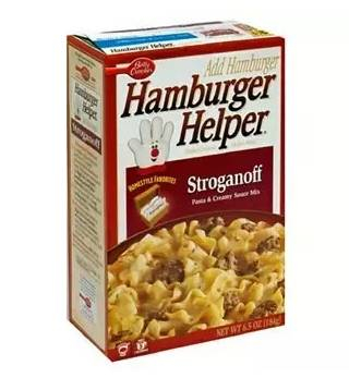 更别说还有各种各样像Hamburger Helper这样的方便食品了。我个人最喜欢的是Stroganoff(奶油蘑菇肉酱)。