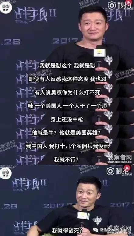 包括上面这段,之前在朋友圈刷屏的“吴京霸气怒怼质疑”的视频。