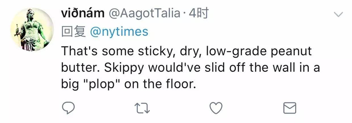那得是又粘又干的次品花生酱才行。如果是skippy(花生酱品牌)的话,会顺着墙壁流到地板上。