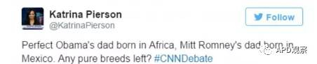 上个月,在川普的女发言人发了这么一条推特之后… “被外界视为完美的奥巴马,他爹是非洲的,马萨诸塞州州长mitt romney,他爹是墨西哥的,到底美国还剩下多少纯种的?”