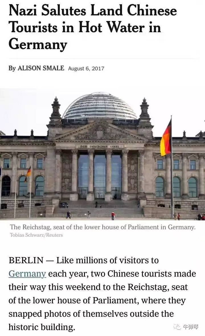 也就是说,这个姿势,等同于纳粹德国标志。而这两位中国游客,竟然公然在二战地标意义的德国国会大厦前,行起了纳粹礼。。……