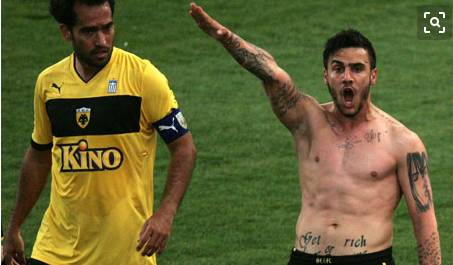 2013年3月,20岁的希腊U19国家队队长卡提蒂斯效力于雅典AEK队,比赛中他用纳粹手势庆祝了自己的进球。对此,希腊足协宣布永久禁止他参加任何级别的国家队!