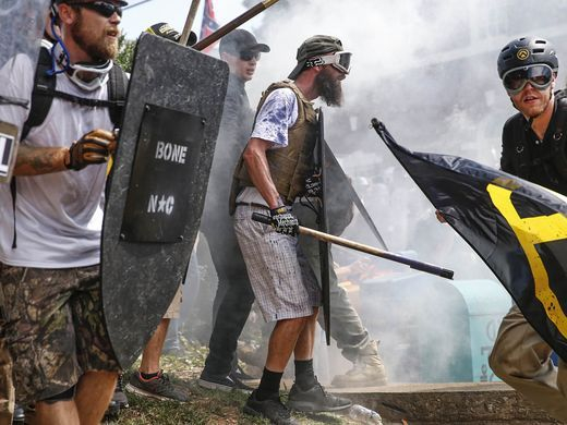 骚乱造成伤亡令人震惊,但是更值得警惕的是在反对拆除雕像的主力中,许多人持有白人至上主义观点,他们甚至在示威中将纳粹旗帜和原南部同盟的旗帜同时打出,另有数百人模仿纳粹当年的夜间火把游行,在弗吉尼亚大学周边游行时候一边高举火把一边行纳粹礼。他们的口号也颇为耐人寻味,除了纳粹当年经常使用的“鲜血与国土”等,尤为值得关注的是“白人的命也重要”、“你们不会取代我们”等等。