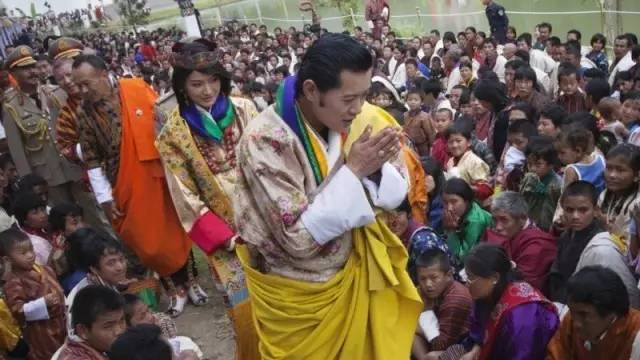 不丹人与他们的国王、王妃。不丹国王旺楚克(英国牛津大学毕业)2006年继位,2008年3月24日,不丹迎来其历史上的首次民主选举,直接选举国民议会议员,并在此基础上产生首个民选政府。2013年,不丹举行第二次国民议会选举,原来在野的人民民主党获胜,首次实现执政党轮替。