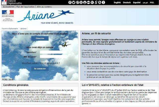 法国外交部的安全出行网站Ariane