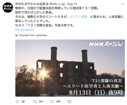 事实上,《731部队的真实》并非在战败日之际,NHK做的唯一相关举动。