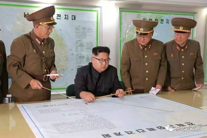 至于关岛攻击简报会,可以见到金正恩以指挥官的身份坐镇,两侧有一群将领。当中一位将领是Kim Jong Sik,他是资深火箭科学家,同时也是朝鲜导弹计划的主谋之一。