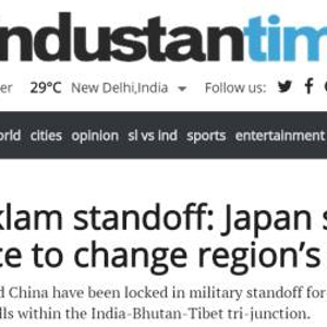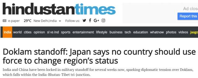 日本驻印度(兼不丹)大使平松贤司表示,日本“反对任何一方以武力改变现状”,认同印度介入洞朗问题是“基于同不丹的双边协议”。