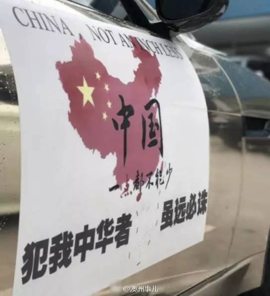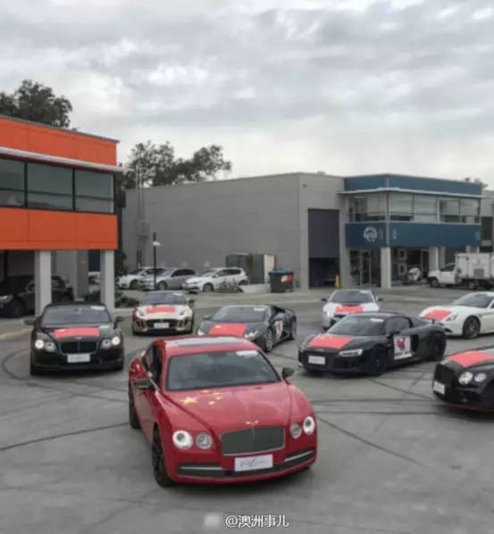 近日,悉尼华人组织了10辆豪车车队举行了游车抗议。这些豪车车身均贴有鲜艳的五星红旗,配以中英文标语“犯我中华者,虽远必诛”。