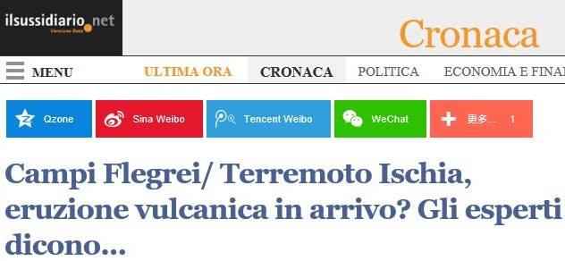 “是坎皮佛莱格瑞火山引发的地震?我想想就要被吓尿啊!那些住在伊斯基亚岛上的人可咋整啊?”▼