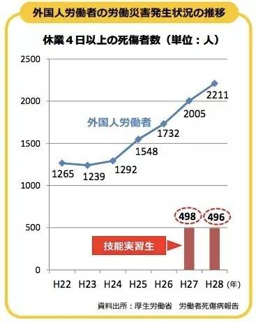 据日本法务省今年公布的资料,2016年,日方企业或团体拒付研修生工资等行为共计383起。日本厚生劳动省的数据也显示,发生伤亡事故的外国劳动者逐年增加,其中,研修生伤亡事故每年大约会发生500起,部分事故甚至致人死亡或留下严重后遗症。