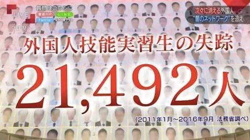 外事儿(微信ID:xjb-waishier)注意到,NHK曾报道说,2011年1月至2016年9月,在日“失踪”的外国研修生达21492人。