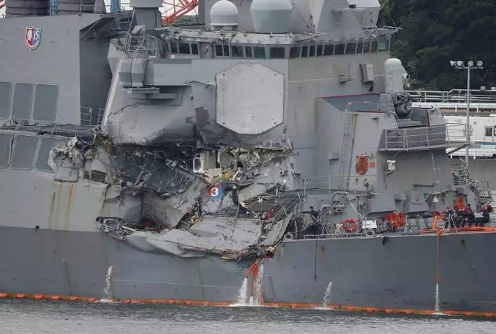 外媒称,美军“约翰·麦凯恩”号导弹驱逐舰8月21日在马六甲海峡附近与油轮相撞。继6月在伊豆半岛海域与集装箱船相撞的“菲茨杰拉德”号之后,美国第七舰队又一艘驱逐舰因需要修理而离开岗位。