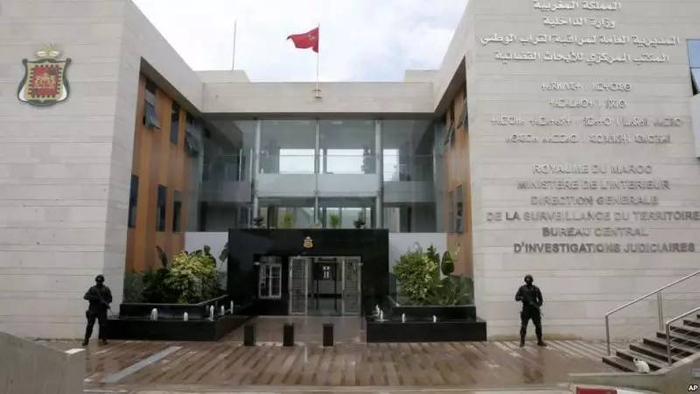 摩洛哥反恐特警在首都拉巴特附近的中央司法调查局总部前站岗,图片来源:VOA