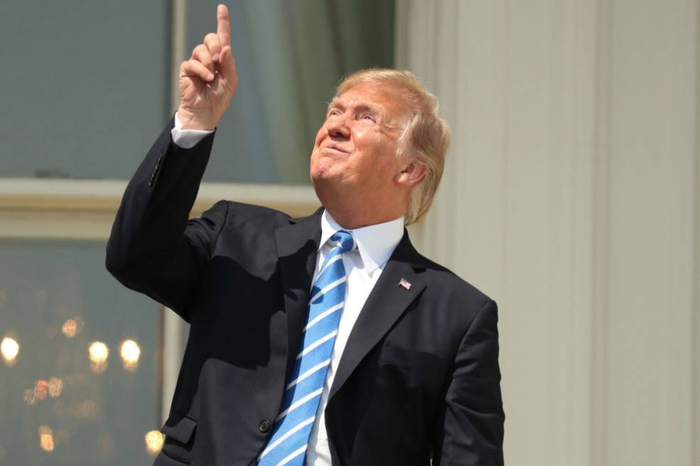 不过作为当事人的总统特朗普,好像没事儿人一样。他站在白宫阳台上不带特制眼镜看日食的画面通过电视网络直播成为“奇观”,在社交媒体上成为热门表情包。