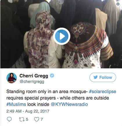 △ 穆斯林:美国不少穆斯林也在日食这一天走进清真寺祷告
