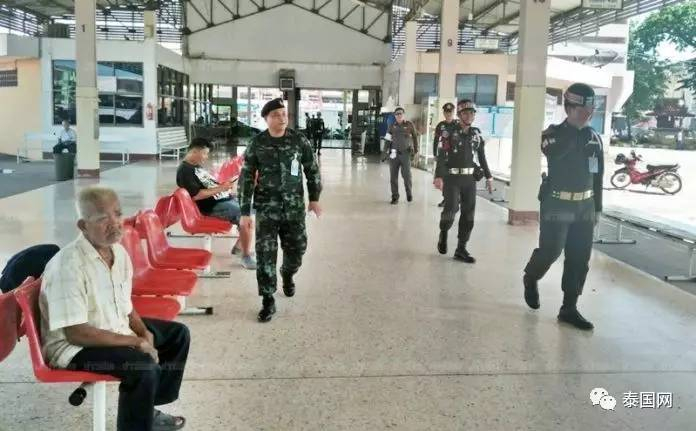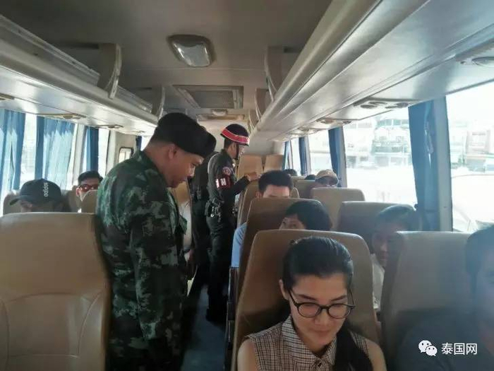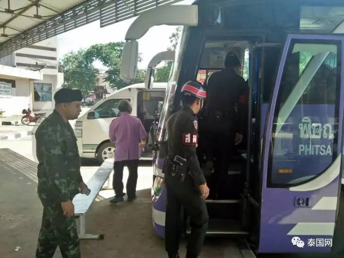 军警在车站,各大运输流动点对车内前往曼谷的民众进行调查询问。