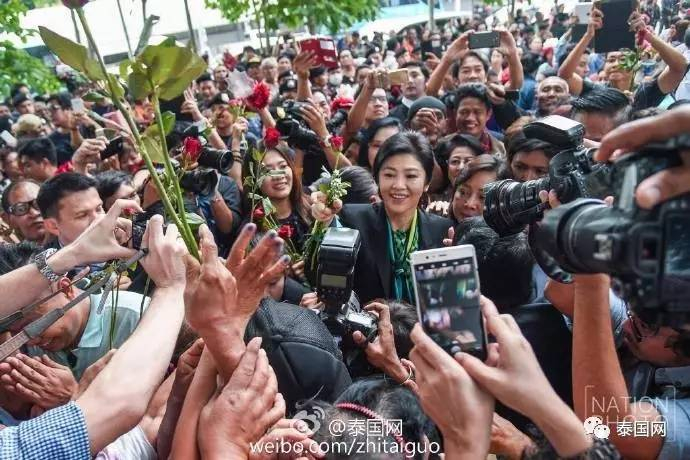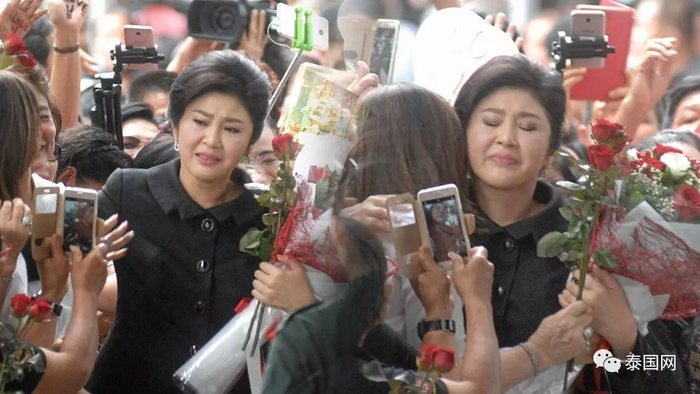 2年的审理过程中,每次英拉出现在泰国最高法院前准备出庭听证时,都会有前来支持的民众献花,帮英拉加油打气!