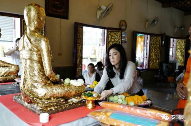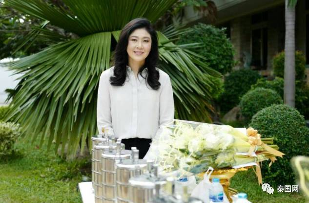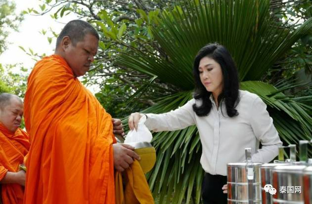 不过英拉自己倒还挺淡定,今早(8.23),在曼谷家中为Bungthonglang寺庙的17位僧侣布施,并接受了寺庙住持的诵经赐福。