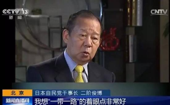 ▲自民党干事长二阶俊博接受央视采访时,对中国提出的“一带一路”倡议表达积极意向。