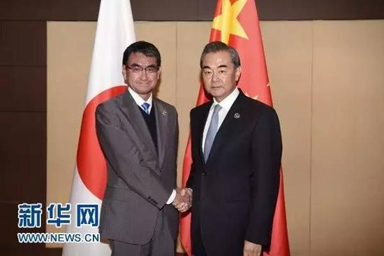 ▲8月7日,中国外交部长王毅在菲律宾马尼拉出席东亚合作系列外长会期间会见河野太郎。