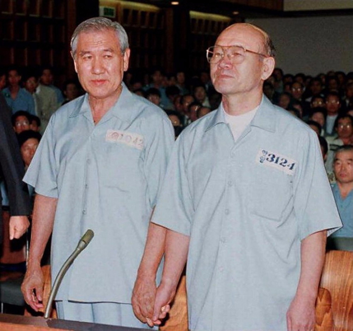 全斗焕(右)和卢泰愚受审。