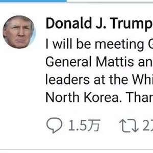 美国总统特朗普在发出谴责平壤的推特后,他又发了一条推特,这次的内容是:他将与白宫办公厅主任凯利将军、国防部长马蒂斯及军方领导人在白宫开会,商讨对平壤的下一步措施。