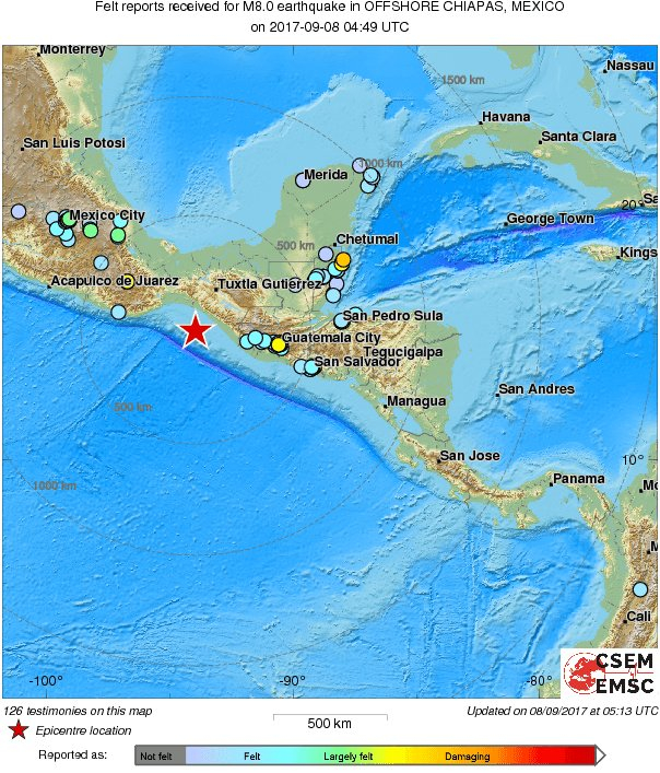 当地时间8日凌晨,据美国国家地震台网报道,墨西哥恰帕斯州沿岸近海附近发生8.2级左右地震,墨西哥城中心有强烈震感。据路透社报道,地震或引发强烈海啸,可能在震后3小时即会到来。