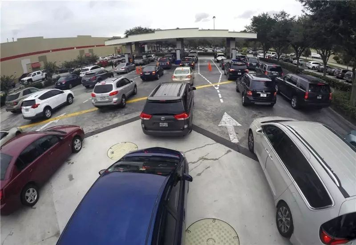 9月6日,在美国佛罗里达州阿尔塔蒙特斯普林斯,车辆在加油站排队等待加油。新华社/美联