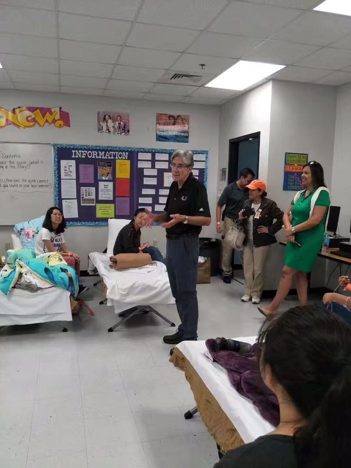(迈阿密大学校长,Julio Frenk,在避难所与学生交流)
