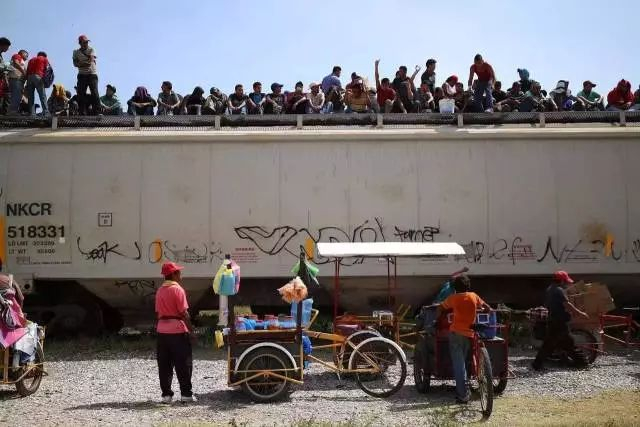 墨西哥边境爬上被称作“死亡列车”的货运火车前往美国的中非移民 / 视觉中国