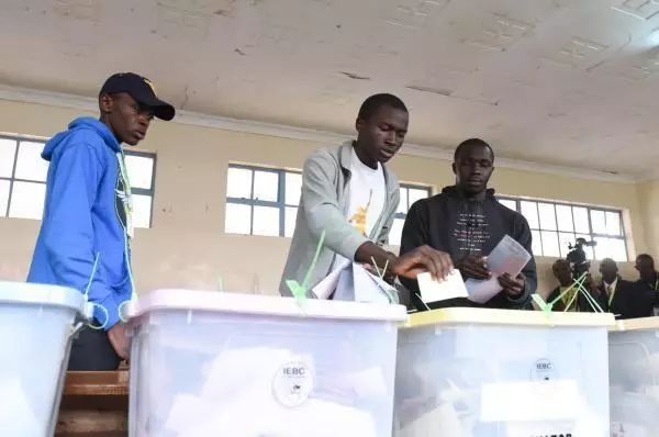 ▲肯尼亚一处贫民区的投票站,选民在参加投票