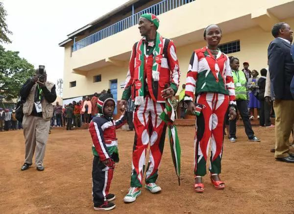 ▲身穿肯尼亚国旗颜色衣服的民众前来投票