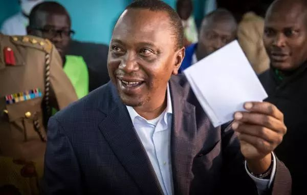 ▲现任总统乌胡鲁·肯雅塔参加大选投票