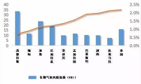 图 3 长期气候风险指数(CRI)1996年-2015年10个最受影响的国家(年度平均值)