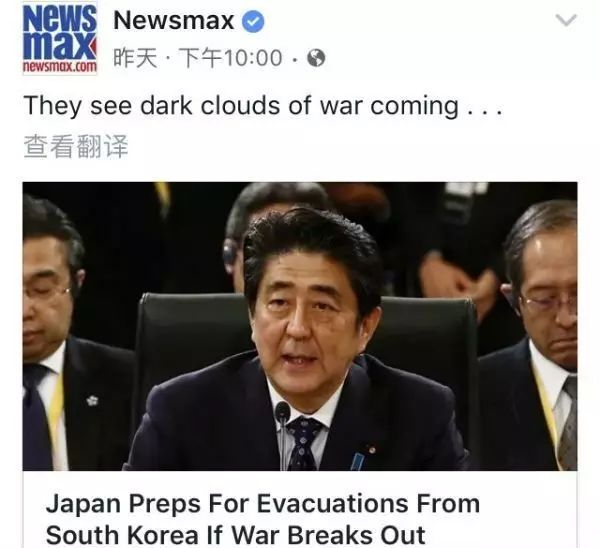 “战争的阴云正在逼近。”美国Newsmax网站如是评价道。文章还认为,日本政府打算撤侨的动向对朝鲜而言“是一个警示”。