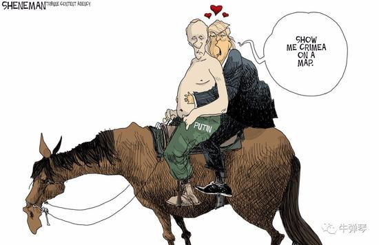 尤其是上面《经济学家》杂志的封面,川普的嘴唇,还有普京的吻痕,你说谁是新娘的角色?