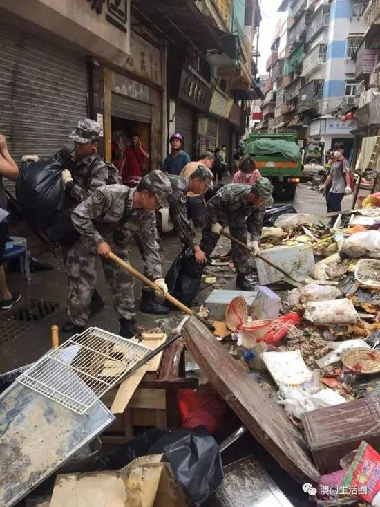解放军25日进入澳门,清理垃圾、杀菌、灭鼠,恢复原本的城市面貌,28日就圆满完成救灾任务。