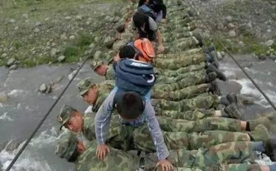 中国人民解放军却在搭“人桥“护送学生过河⬇️