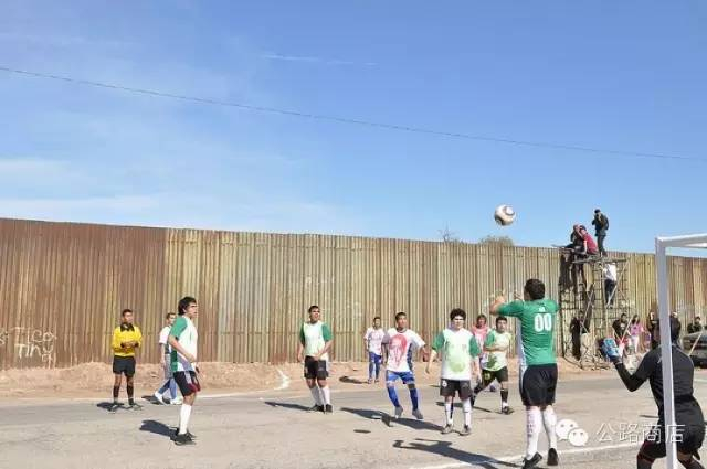 除了排球,足球也在美墨边境线非常流行。两边各有五个进攻队员和六个防守队员。防守队员负责不让球进门和一个大脚开到对面。进攻队员负责把球踢进自己这边的球门。