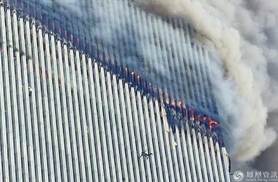 只听见“轰”的一声巨响,世贸大厦浓烟滚滚,烈火冲天。