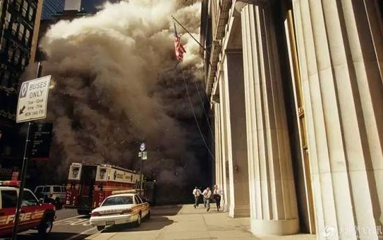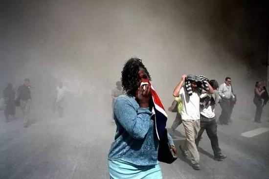 纽约市民目睹高楼倒塌的惨烈场面,个个抱头痛哭,甚至有人当场就晕厥过去了。